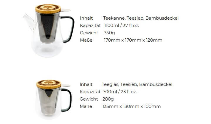 Eine Übersicht über unsere Produktpalette von Teegläsern, Teekannen, Tee, Teezubehör & Co findest du auf folgenden Seiten: