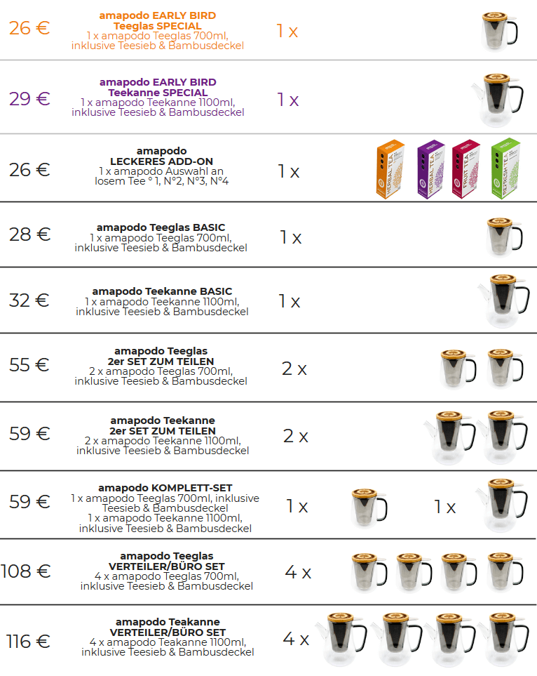 Wir sind unglaublich stolz darauf, unser neues Produkt, amapodo Teekanne und Teeglas, mit euch zu teilen und wir schätzen all eure Aufmerksamkeit, Unterstützung und Leidenschaft, wenn wir mit unserem Launch voran schreiten! 🙂