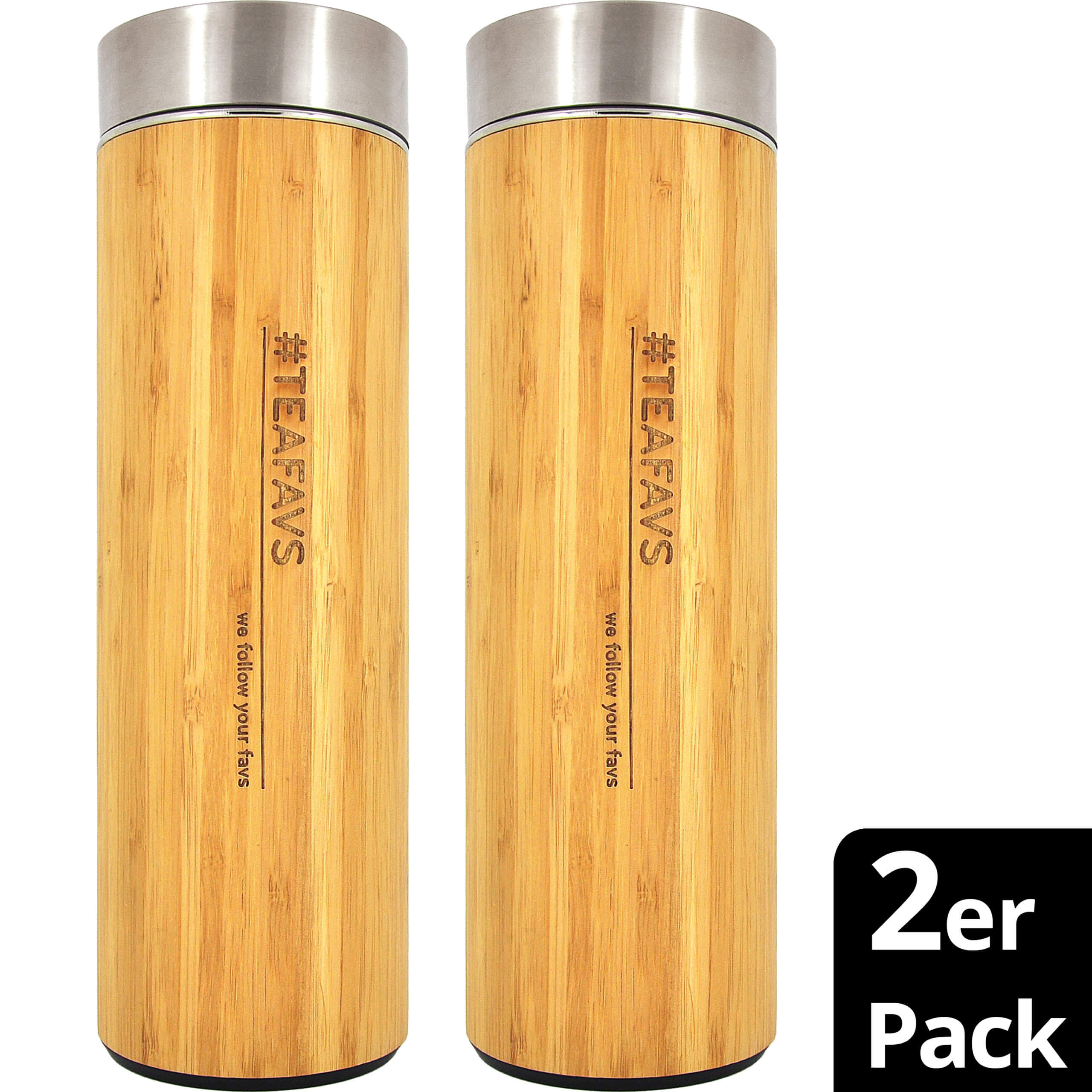 • 2er-Pack Trinkflaschen aus Bambus mit Edelstahl Filter, Isolierbecher für heiße & kalte Getränke