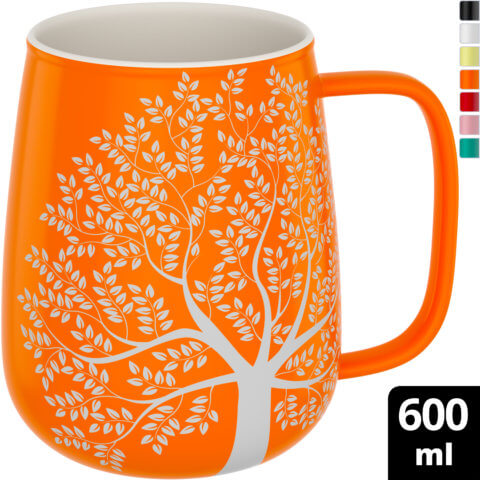 In die große bauchige Tasse passen 600ml deines Lieblingsgetränks. Besonders praktisch an diesem Kaffeebecher ist der große und ergonomisch geformte Henkel, der für alle Hände gemacht ist. Ein extra breiter Boden verleiht dem Becher mehr Stabilität und Standfestigkeit.