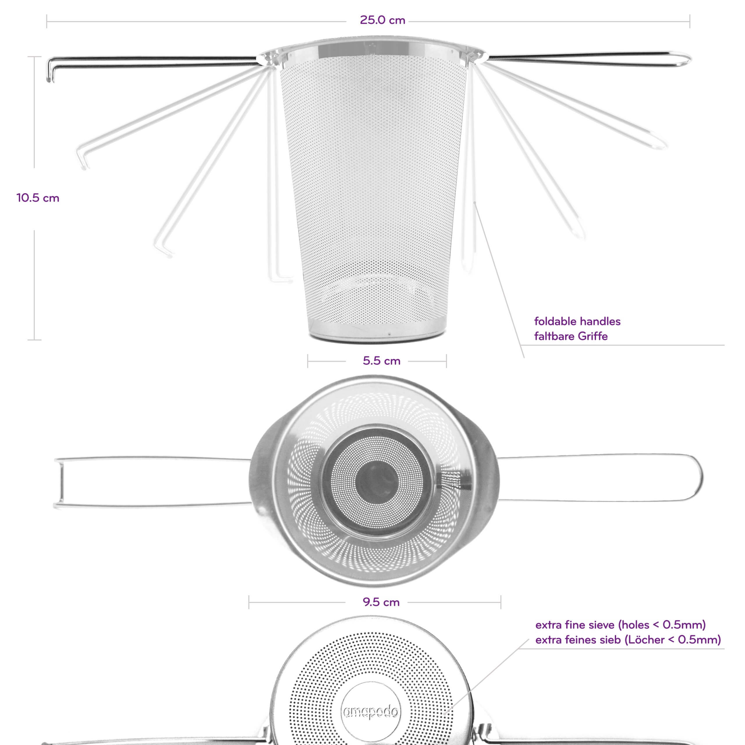 - 1x Teesieb extra gross mit faltbaren Griffen, Material: Edelstahl