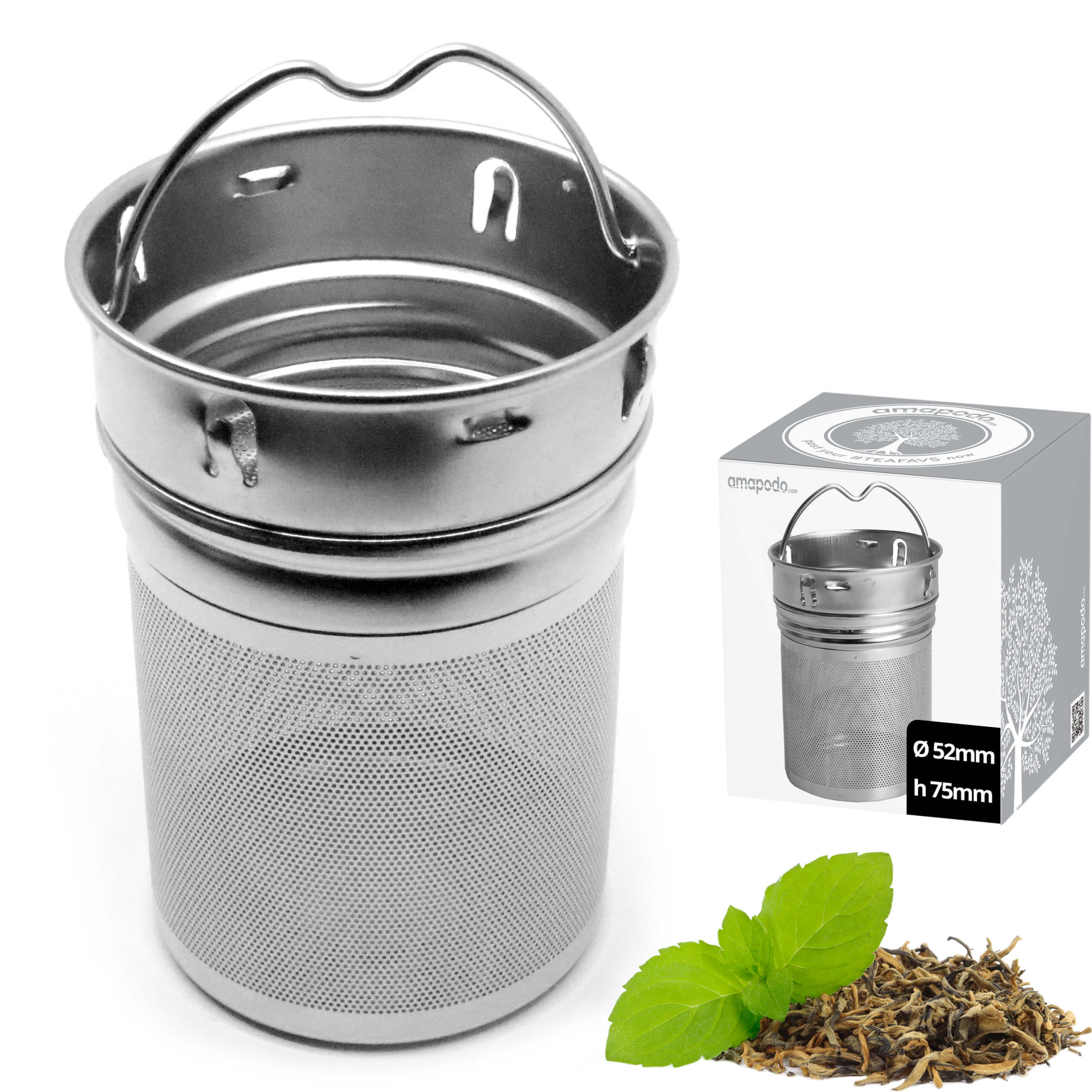 amapodo Teesieb plastikfrei für losen Tee Edelstahl Teeei Filter groß und fein mit Henkel Teefilter für Teekanne Tasse Teeflasche