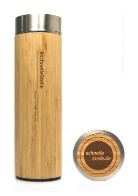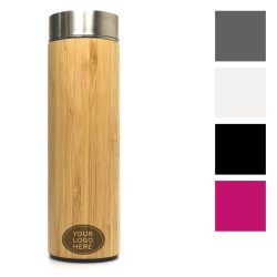 Thermobecher aus wärme- und kälteisolierendem Edelstahl. Fassungsvermögen 500ml. Das dazugehörige zweiteilige Teesieb mit Henkel aus 18/8 Edelstahl ist ineinander verschraubbar und kann einzeln oder in Kombination für sehr feinen losen Tee und größere Teeblätter oder Infusionen verwendet werden. Deckel bestehend aus Edelstahl und echtem Bambus mit natürlicher Maserung. Mehr