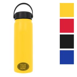 Trinkbecher aus wärme- und kälteisolierendem 18/8 Edelstahl in den Farben gelb, schwarz, rot und blau. Fassungsvermögen 600ml. Der dazugehörige Deckel aus Edelstahl schließt luftdicht und auslaufsicher. Mehr
